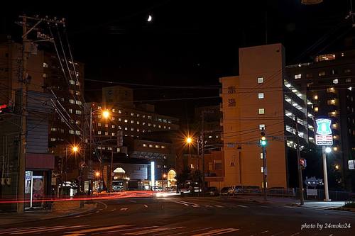 7月29日(土) 湯の川温泉街上弦の月(24moko24)