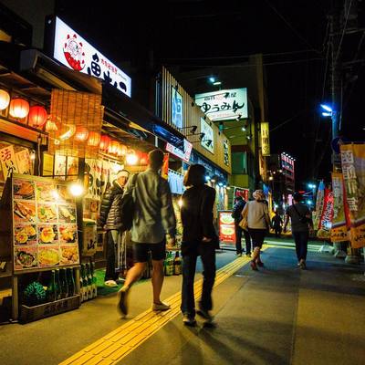 居酒屋が並ぶ駅前大門地区も観光客で賑わってます!