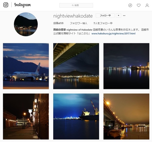 写真をシェアする人気のSNS、Instagram(インスタグラム)に、「函館夜景盛り上げ隊」の撮影したとっておきの写真が毎日アップされます。ぜひご覧ください(下記をクリック)。