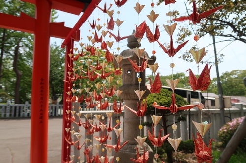 悪疫退散や平和の願いをこめた折り鶴が風情満点。鶴若稲荷神社の御朱印は、函館八幡宮の社務所で受けることができます。