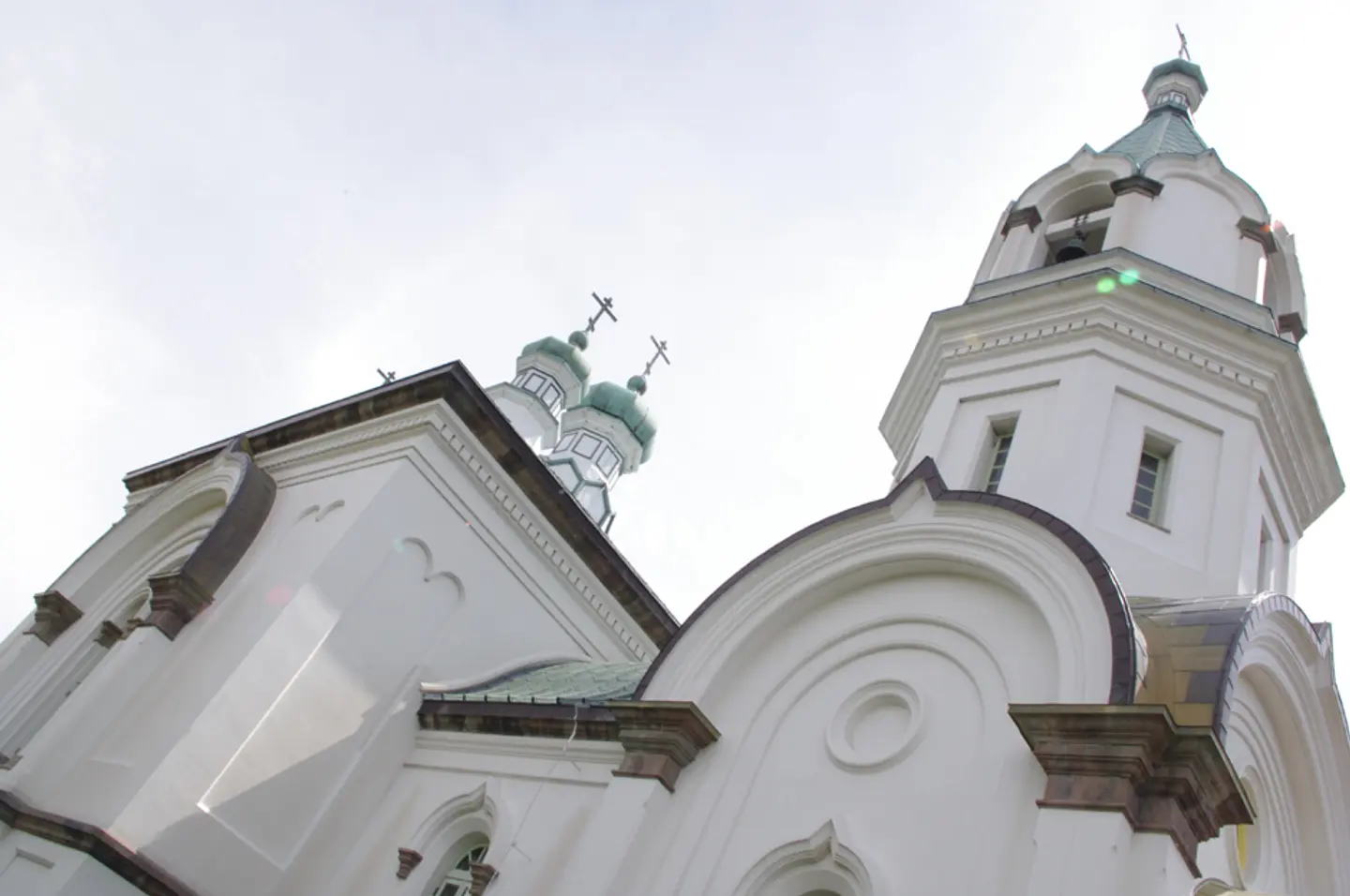 日本初のロシア正教会聖堂。白壁と緑屋根のコントラストが...
