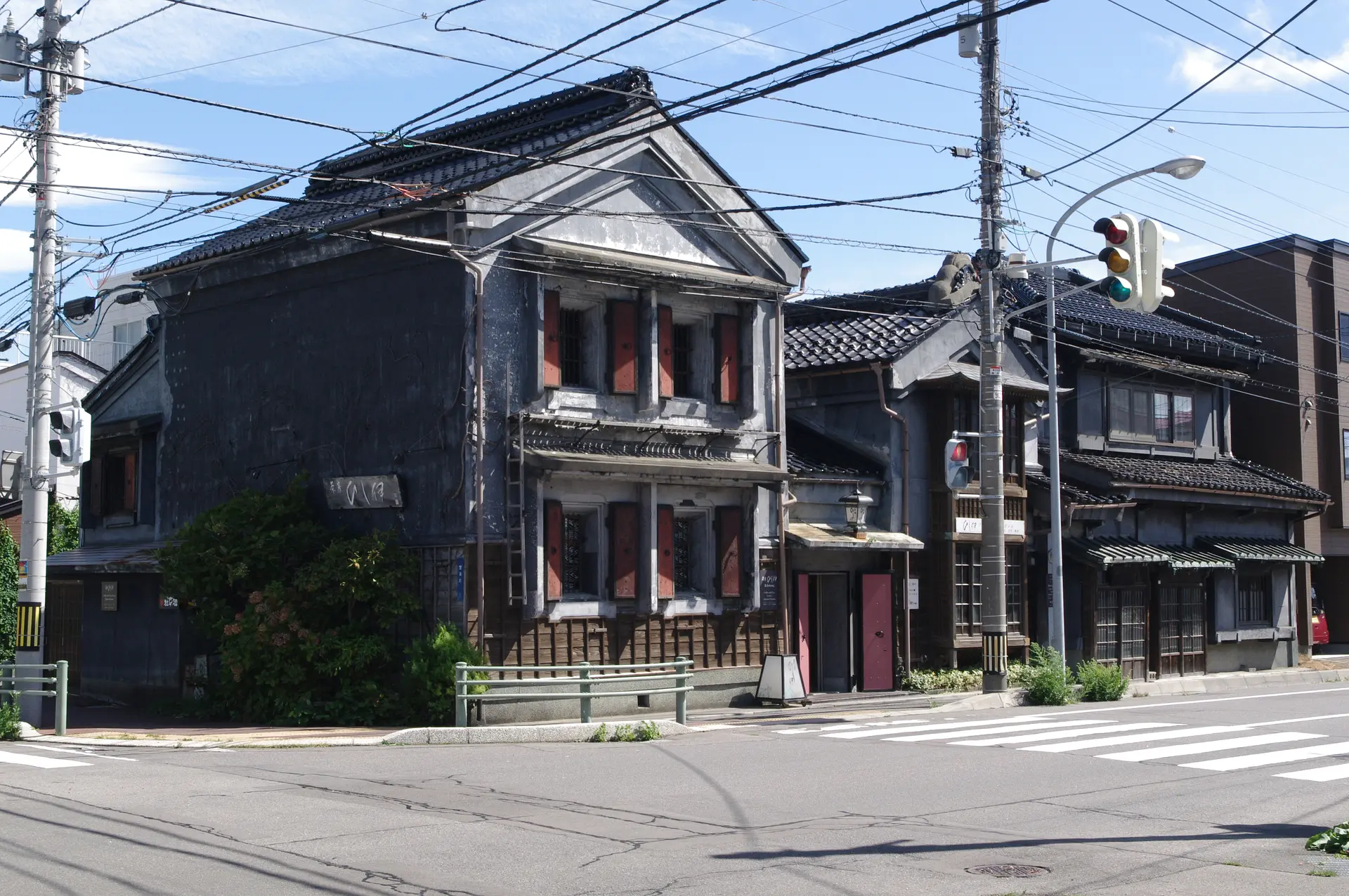 市電「末広町」電停目の前、築100年の黒建物に赤い窓枠の和風カフェ。お好みのドリンクを選んで軽食がつけられる岐阜県風モーニングを提供。気軽に使えそうな生活骨董品も販売している。