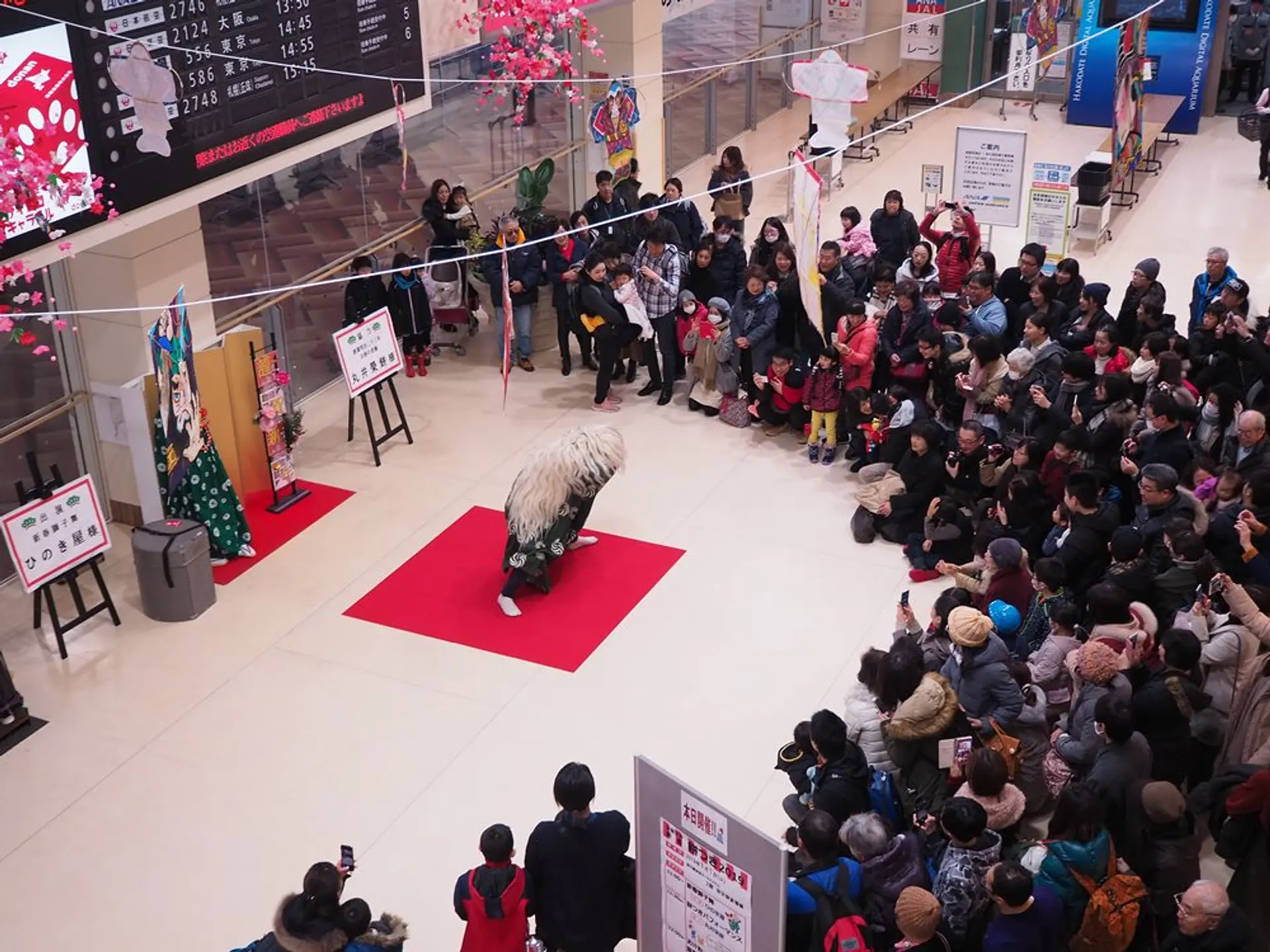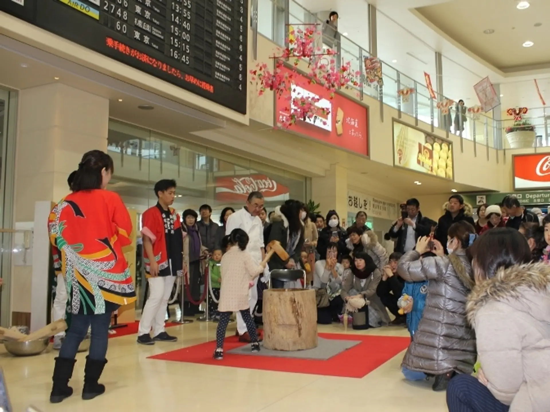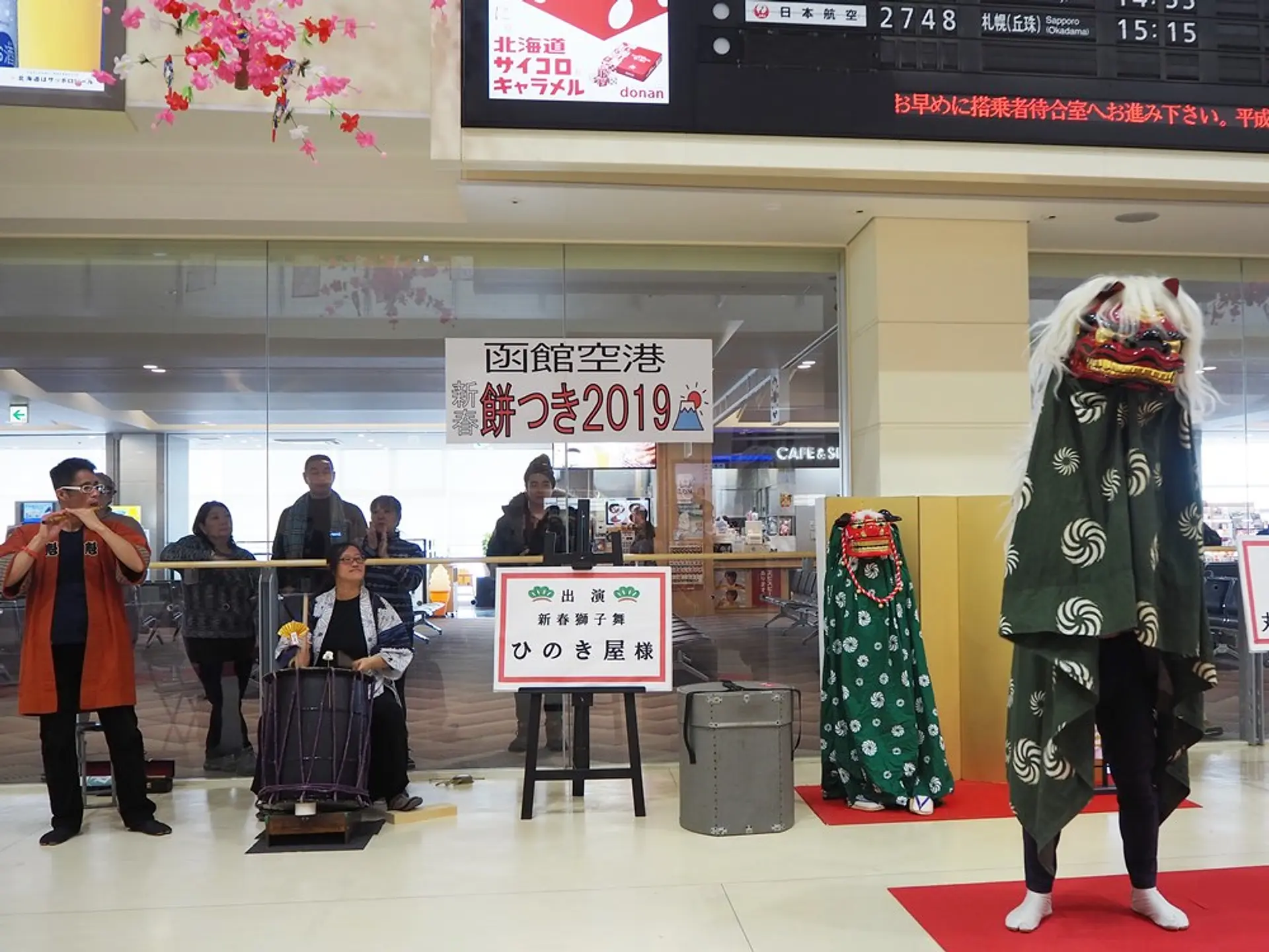 函館空港の国内線ターミナルで元旦に行われる縁起のいいパフォーマンス。函館のバンド・ひのき屋の獅子舞と、餅つき、お汁粉やお酒のふるまいなど。無料で観覧・参加可能。