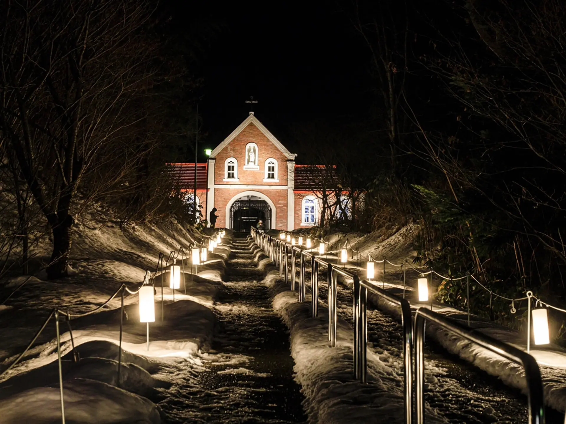 函館近郊にあるトラピスト修道院に続く並木道を、クリスマス前に幻想的にライトアップ。24日には手作りワックスキャンドルの光も加わる。期間中、16~20時に点灯。