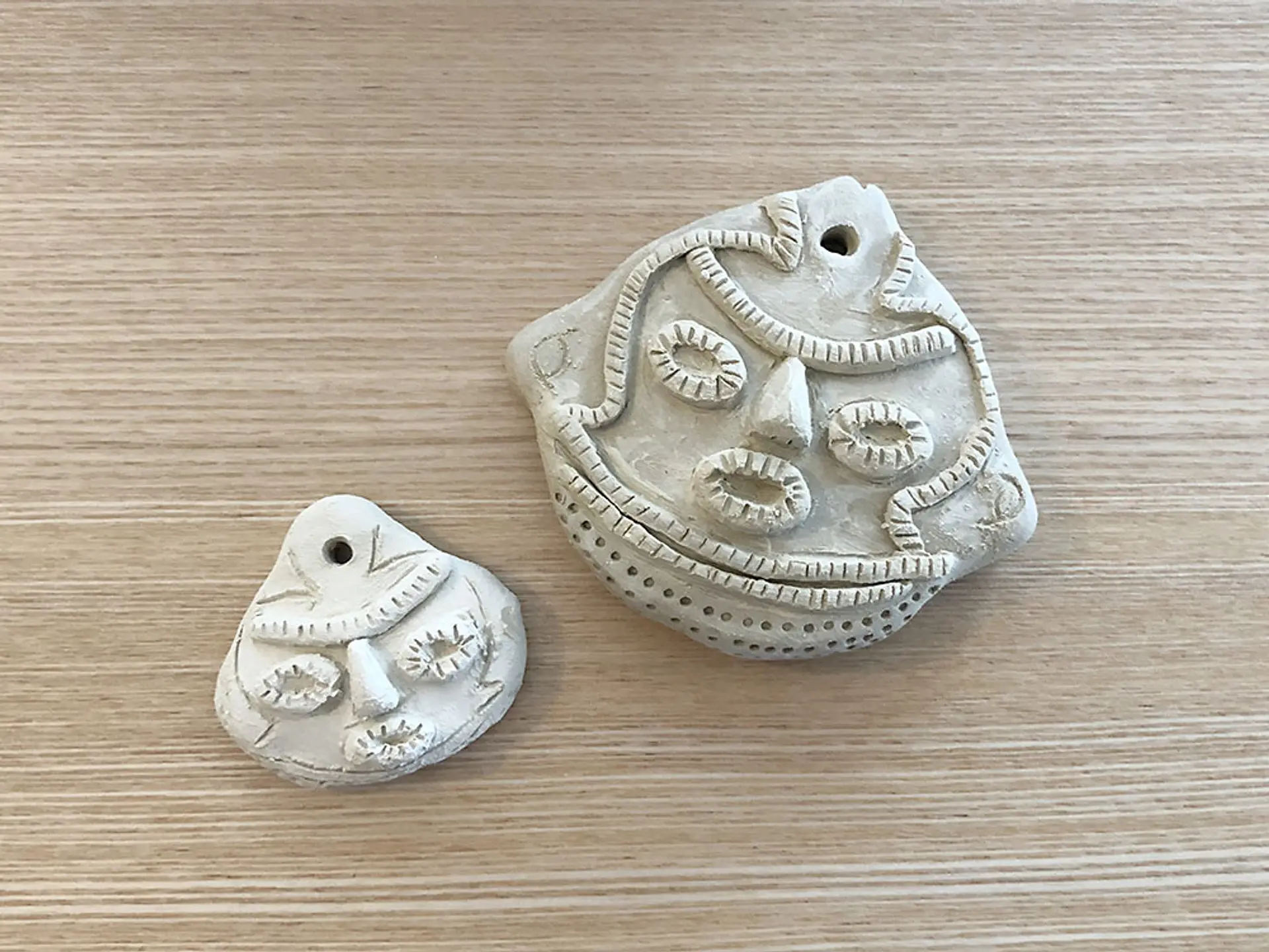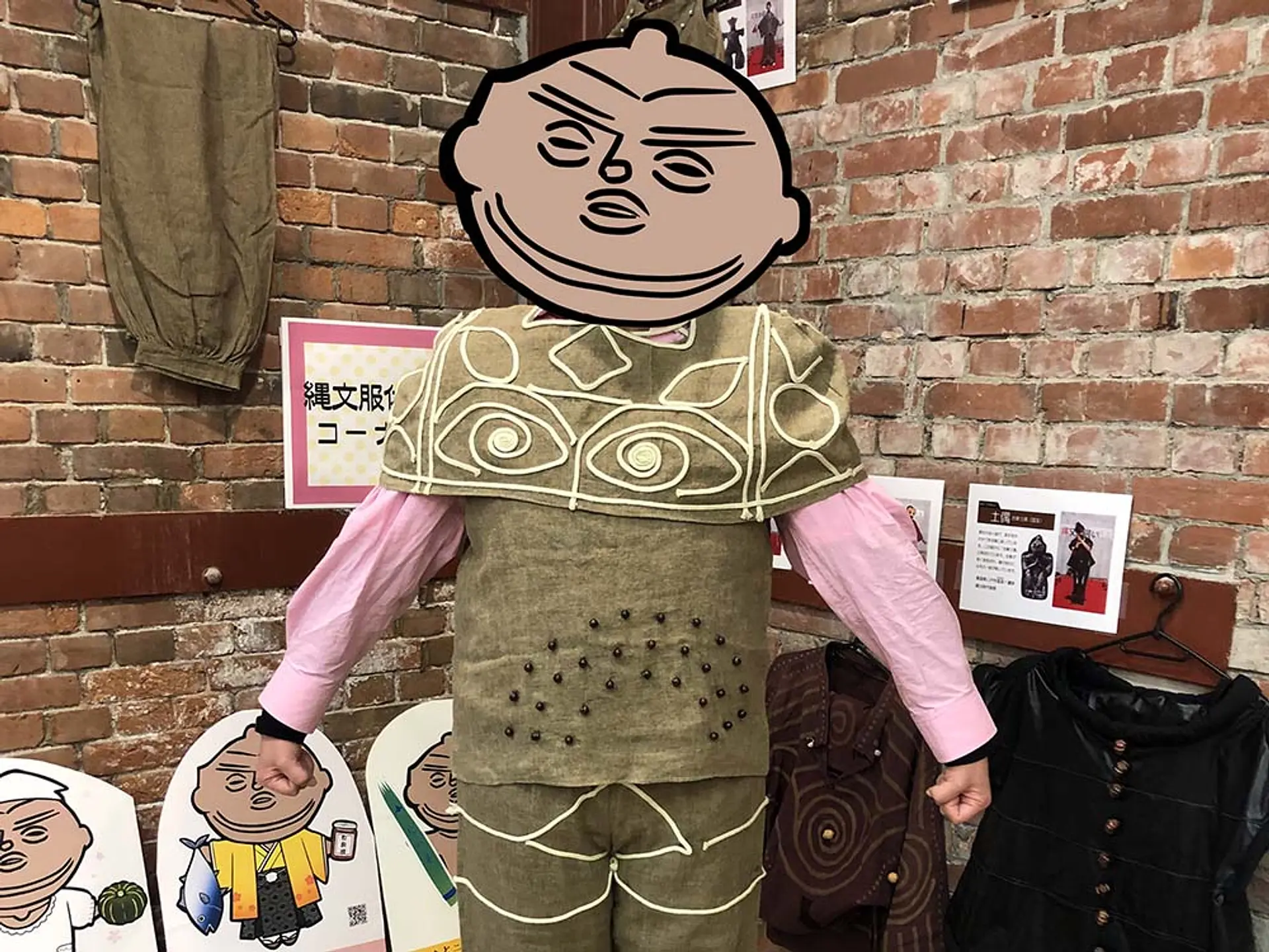 縄文キャラクターかぶりもの撮影会(無料)のほか、有料の勾玉づくり、土偶づくり、縄文アクセサリー作りなどが楽しめます。