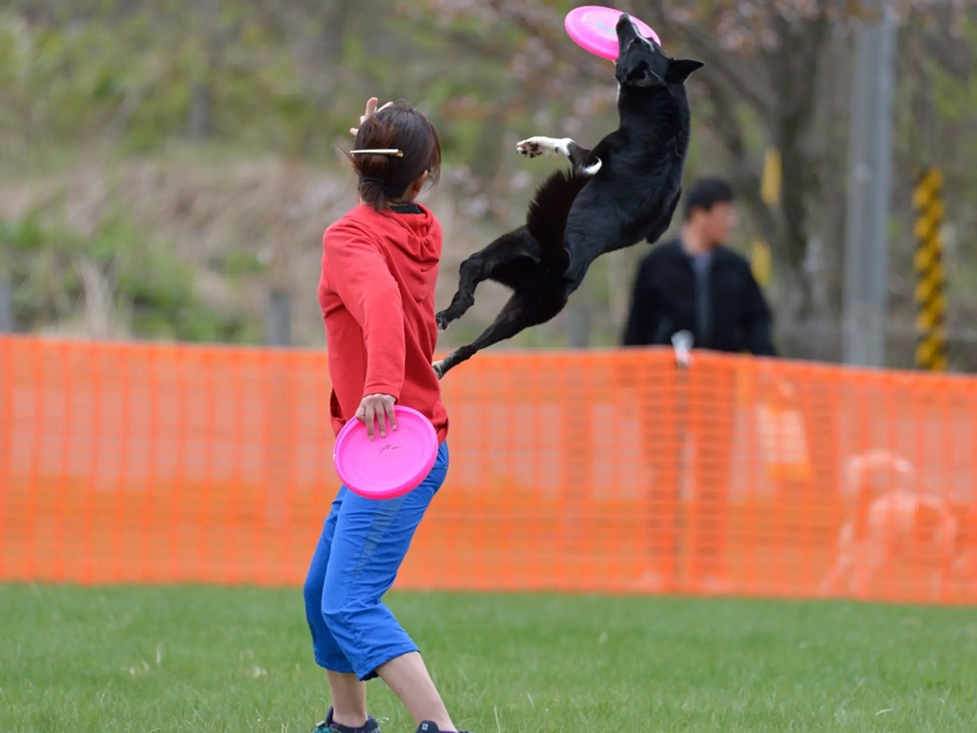 参加型イベントとして、ワンちゃんの徒競走「わんダッシュ」、投げたおもちゃを持ってくる距離と回数で競う「レトリーブ」、警察犬の訓練士による「愛犬パートナー初級認定試験」、ワンちゃんの得意な技を披露する「芸達者さん、集まれー」があり、こちらは事前の申し込みが必要です。また、ジャパンディスクドッグクラブのスタッフによるフライングディスクのデモンストレーション後には、ディスクドッグの体験ができます。