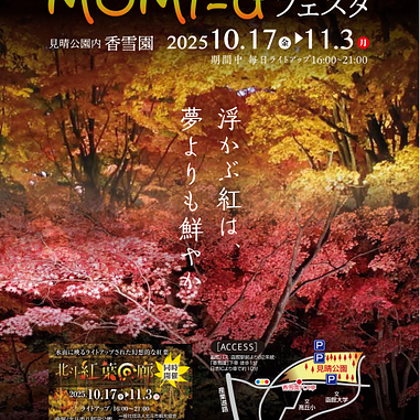 「はこだてMOMI-G(もみじ)フェスタ」は、函館随一の紅葉の名所である香雪園(見晴公園)で行われるイベントで、期間中は、約100メートル続くカエデ並木などを16時から21時までライトアップ。園内は幻想的な雰囲気に包まれます。