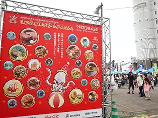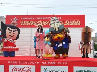 函館市内や近郊、函館とつながりのある日本各地の人気ご当地グルメがずらりと出店する、函館最大級の食のイベント。ご当地キャラクターによるステージもあり。