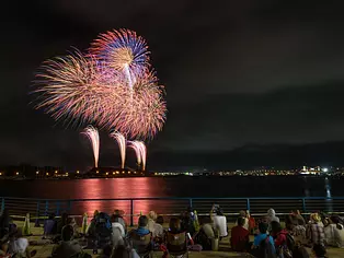 主な観覧場所は、青函連絡船記念館摩周丸付近の若松ふ頭から豊川ふ頭にかけてと、金森赤レンガ倉庫のあるベイエリア、函館港末広緑地(函館西波止場広場)。湾岸を走るともえ大橋は、花火の時間は車両通行止めになり、歩行者専用でゆったり見られます。また、函館山展望台からは、夜景と花火のコラボレーションが楽しめます。