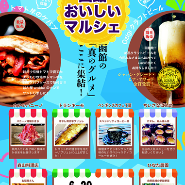 函館マラソン前日の6月29日の午前10時から午後2時まで、函館駅前の「プレミアホテル-CABIN PRESIDENT-函館」1階ツインタワー広場で、函館の「真のグルメ」を集めた「函館おいしいマルシェ」が開催されます。