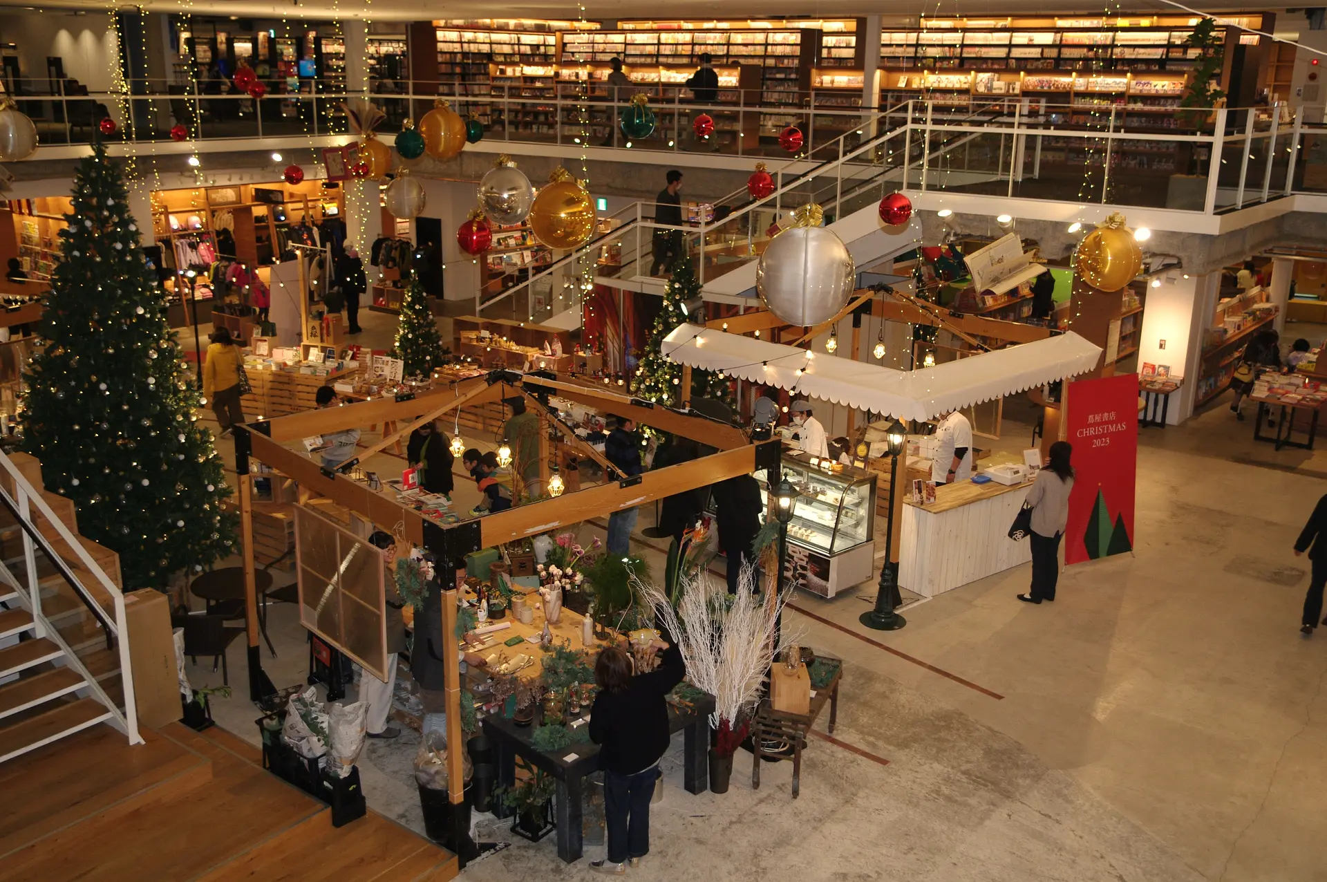 函館から大沼・札幌方面に向かう幹線道路沿いにある複合商業施設、函館蔦屋書店の中央吹き抜けマルシェ(広場)で開催される「クリスマスマルシェ」。