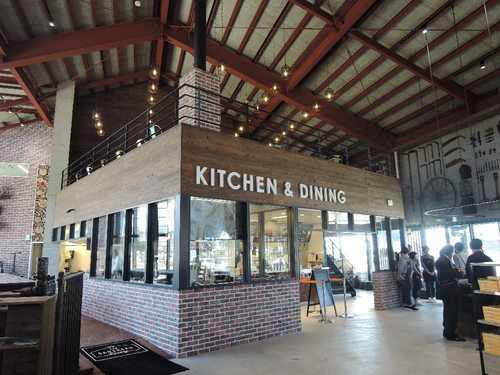 奥のほうは、地元の食材を生かした料理を提供するキッチン&ダイニングスペース。11:00~15:00(LO14:30)。