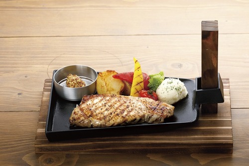 函館近郊・森町のブランド豚を使った「ひこま豚ロースステーキ(ライスかパン、サラダ、ドリンクつきで1550円)」。スモーキーな香りが肉の旨味を引き立て、ジューシーな口あたり。