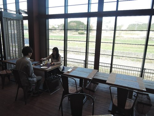 1階レストランは、ソーシャルディスタンスを感じられる32席。大きな窓から、広々とした田園風景が眺められます。