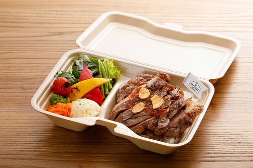 テイクアウトコーナーでは、レストランメニューを弁当として持ち帰りできる「男爵弁当」の受け取りもできます(予約可能)。写真は、「男爵弁当 牛サーロインステーキ」。