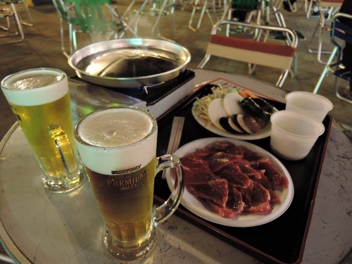 五稜郭公園に夜桜電飾が点灯する、お花見期間のみの営業。肉・野菜・タレ・皿・はし・紙おしぼりにコンロと鍋まで付いてくるので手ぶらでOK。要予約。
