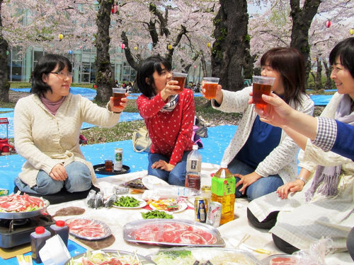 多くの北海道民にとって、ジンギスカンは日常的な食べ物であるとともに、「ハレの日」の食べ物でもあります。特に象徴的なのは「お花見ジンギスカン」。北海道のお花見はほとんどの場合、静かにお弁当を広げるのではなく、ガスか炭火のコンロでわいわいとジンギスカンを楽しむスタイル。肉の焼け具合に気を取られて、桜を鑑賞せずに花見を終えたりするのもご愛嬌です。