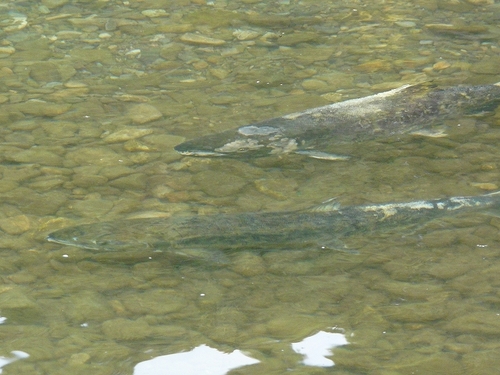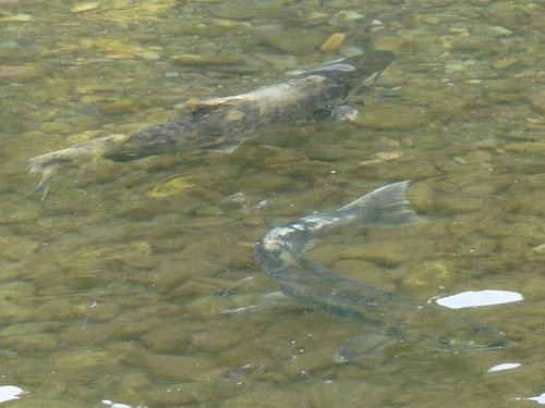 このあたりの河原からも、鮭が川をさかのぼっていくのを間近に見ることができます。