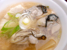 「かき鍋」は知内産のカキと江差産の味噌を使用。こういうこだわりを聞くと、一層おいしく食べられますよね。 |