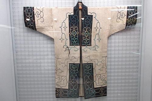 アイヌ民族の衣装はおもに、動物や魚の皮、樹皮や草の繊維、木綿の3種類の素材から作られており、そのほかに交易で入手した和人や海外由来の服も用いていました。こちらではさまざまなアイヌの衣装を入れ替えながら展示しています。