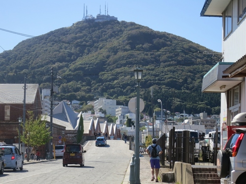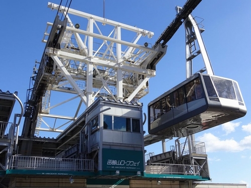 チャチャ登りをつきあたりまで登ったら、坂チャレンジ終了。このあと、函館山の登山道経由で函館山山頂に向かいます。登山口まで移動する途中でロープウェイ乗り場を通りますので、ここまで(約5.5キロ)で終了する人は、ロープウェイで山頂に向かうこともできます。