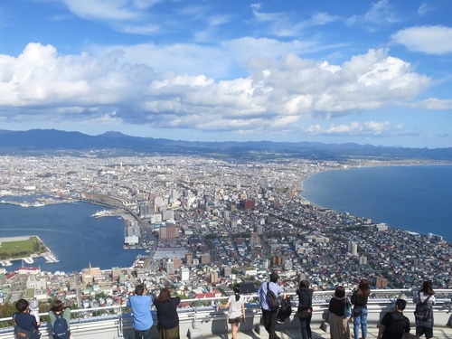 標高334メートルの函館山の山頂には、市街地を見渡せる展望台があります。この景色を見れば、走った喜びもひとしおでしょう。函館駅からのルートも目で見て確認できます。