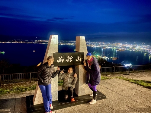 (函館山展望台で。福島和可菜さんと、ランスマメンバー佐野千晃さん、高樹リサさん)
