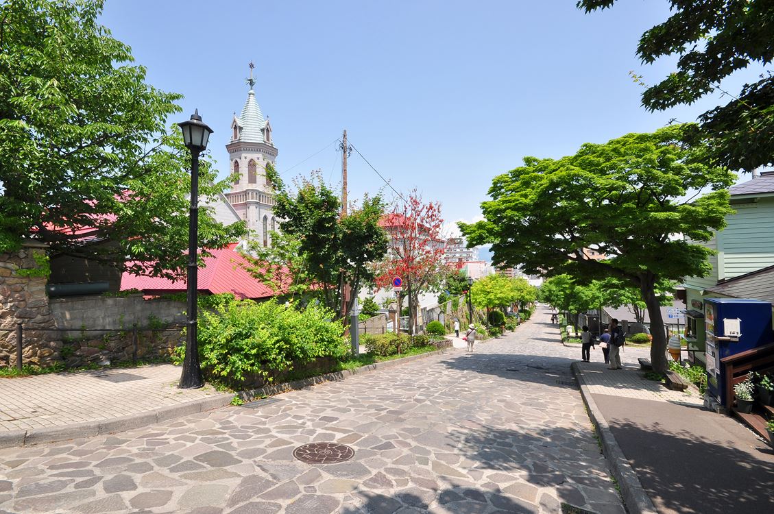主人公と愛犬の散歩コースとして、作品中によく登場する大三坂。ベイエリアと函館山とを結び、和洋折衷の建物と石畳のエキゾチックな雰囲気が魅力です。