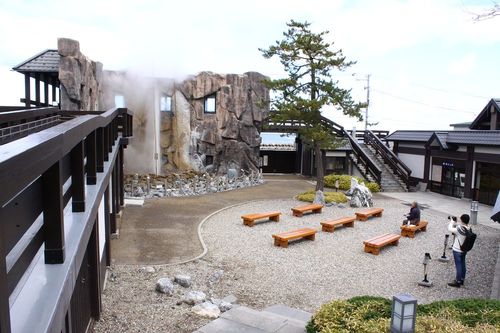 間歇泉の温度は約100℃。タンクで冷やした後に足湯に流されています。神経痛や筋肉痛、関節痛、慢性消化器病、冷え性、健康促進等の効能がある足湯につかって、リラックスしながら、噴き上がる間歇泉を眺めるのも格別です。足ふき用のタオルが常備されていますので、手ぶらでOK。