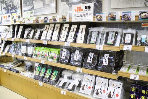 この昆布は身が厚く、その切り口が白く見えることから、北前船の時代から「白口浜こんぶ」と呼ばれ、上浜ものとして区別されてきました。その上等な昆布を使用しただし昆布や早煮芽昆布、とろろ昆布、おぼろ昆布、真昆布だし調味料や昆布茶、おやつ昆布や真昆布クッキーなど、数多くの商品が販売されています。
