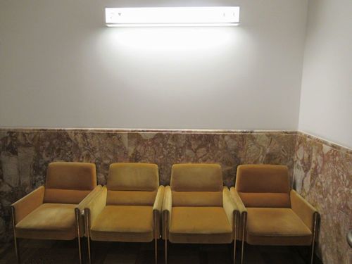 並んで座った椅子は、2階から3階への踊り場にあります。