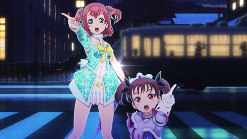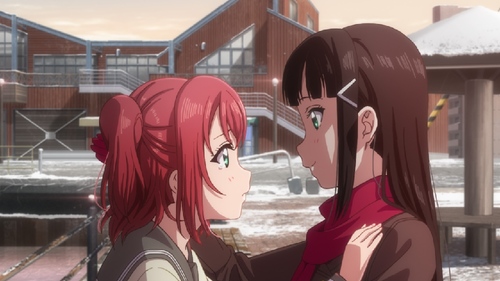 2期9話では、ルビィと理亞が結成したユニット「Saint Aqours Snow」のライブが坂の下で行われました。