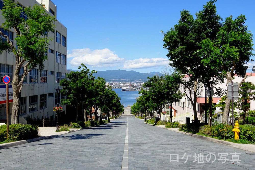 茶房 菊泉から徒歩1分以内。坂の上から港を見おろす眺めは、函館を代表する景観として数多くの映像作品に登場しています。