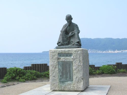 大森浜の中ほど、日乃出町には、海岸線に沿うように広がる啄木小公園があります。やはりこの地を愛した石川啄木の銅像が、函館山を背にして建っています。