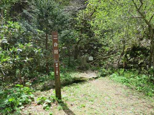 登山道の途中には、「二合目」などと標高が記された標柱があり、安心。