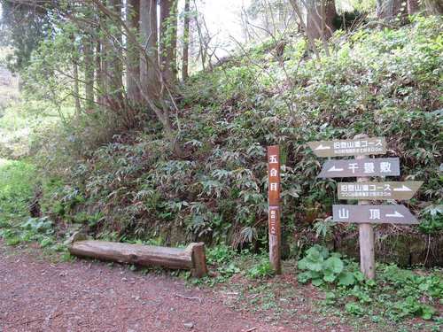 入口から五合目まで、1.5キロほどで約30分。ところどころにベンチがあるので、休憩しながら歩きましょう。ここで、千畳敷に向かうコースと別れて、山頂を目指して右に進みます。