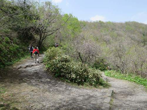 旧登山道コースは、ヘアピンカーブを繰り返しながら、山頂へ。すれ違う人同士が「こんにちは」と言葉を交わしていきます。