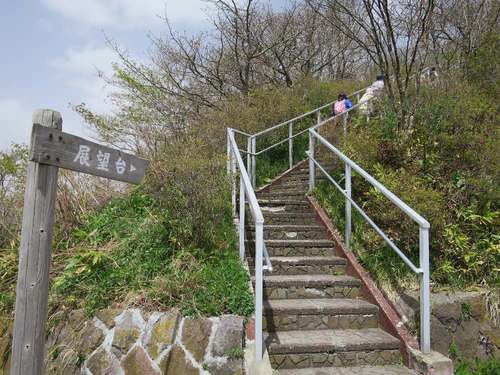 ここから展望台までは階段で。途中、2カ所で車道と交差するので、注意して横断しましょう。