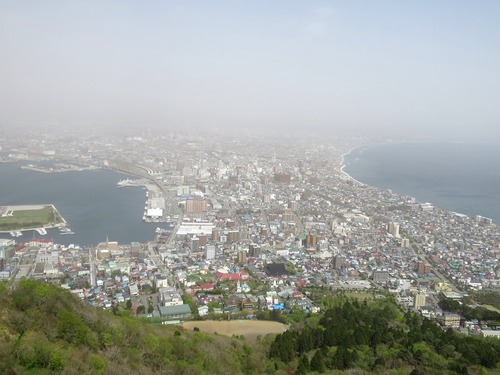 函館山展望台から見た市街地。広々として、夜景とはまた違った清々しい景色が広がっています。初夏には、霧が煙って幻想的な雰囲気になることもあります。