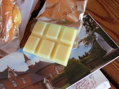 2017年から登場したトラピスチヌ修道院のホワイトミルクチョコレート。2018年は、フル・ハーフとも、湯の川温泉街の第5エイドで提供されます。