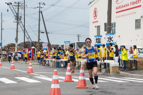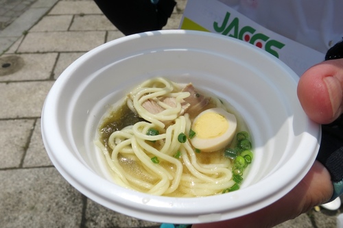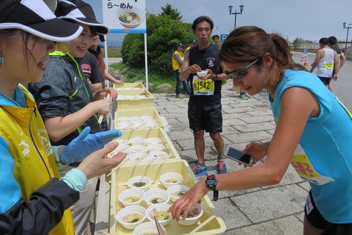 どんぶりや塩ラーメンを楽しみにしてきたけれど、「疲れちゃって、とても食べられない」というランナーのかたが、「せめて写真だけでも」とスマホを向ける姿も。2017年のゲストランナー、西谷綾子さんもパチリ組だったでしょうか。