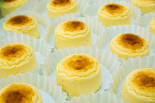 函館みやげの人気アイテム、ペイストリースナッフルスの「チーズオムレット」。スフレタイプのふんわりとろっとした口どけで、するするっと食べられます。