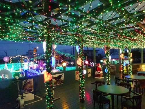国道を走っていくと、ひときわ目立つイルミネーション。店に向かう途中からも眺めることができ、思わず興奮してしまいますが、まずは店奥にある駐車場に車を停めてから、ゆっくり楽しみましょう。