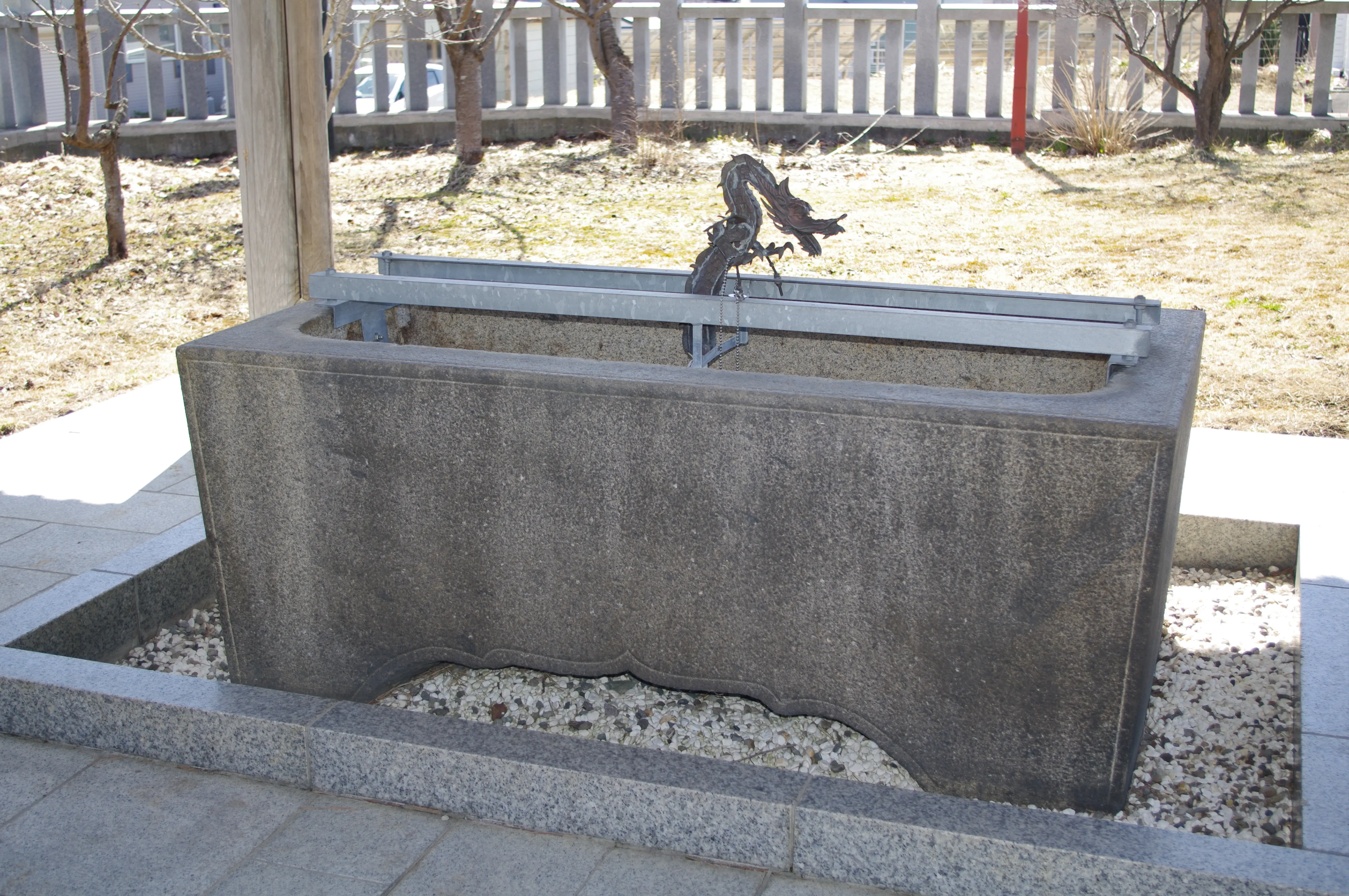 旧東照宮由来の手水鉢(ちょうずばち)には、箱館戦争時の弾痕が残されています。