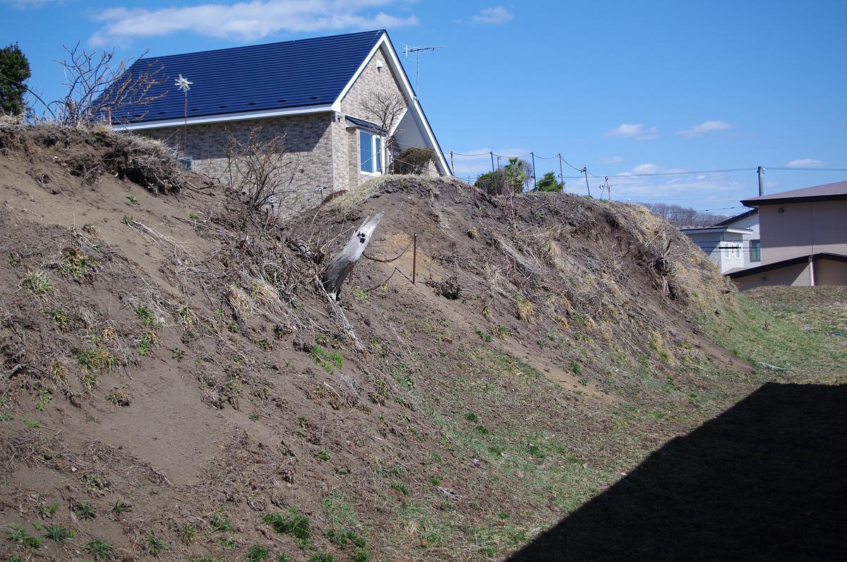 箱館戦争ののちも四稜郭は崩されることなく残され、1934(昭和9)年には国の史跡に指定されました。第二次大戦後の食糧難の折には耕作地に転用されるなどして荒廃したものの、1969(昭和44)年度から1972(昭和47)年度にかけて土塁などが復元され、現在では市民の憩いの場として開放されています(写真は、中の様子を見えなくするための入口の土塁「見隠塁(みかくしるい)」)。