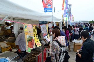 (左)入場の列の横には、地元函館・南北海道の人気グルメがずらり。