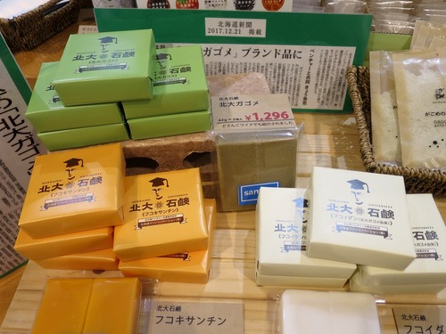 2017年12月には、がごめ昆布に関する研究を行う北海道大学がブランド化した「北大ガゴメ」が一躍話題に。北大ガゴメの特徴は、育成期間が通常の3分の1ですみ、保湿に効果があるとされるフコイダンを2倍以上含むこと。この研究成果を活用して商品化された石けん、美容液、パックが、函館駅前のキラリス函館内「まるごと北海道ストア えぞりす」で販売されています。