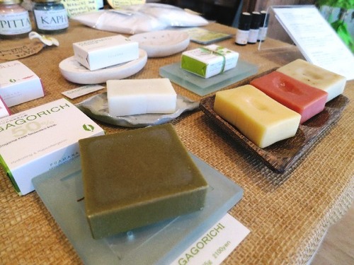 一番人気は、「がごめ生石鹸(85グラム 756円+税)」。がごめ昆布の粗びき粉末を練り込んだ、無添加、無着色、無香料のナチュラルソープです。さっぱり洗えてしっとりうるおう」石けんの秘密は、保湿力の高いがごめ昆布のネバネバ成分フコイダンはもちろん、植物の有効成分も豊富に含んだ、天然素材だけを使用しているから。また、それらの有効成分をできるだけ壊さないよう、人肌に近い低温でゆっくりと素材を練り込んでいき、固めたものを数十日間かけてじっくり乾燥させる、「コールドプロセス(CP)」製法を採用している点にあります。