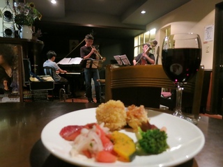 そして、最後はもうひと足のばして、函館公園そばの想苑へ。勝海亮トリオの投げ銭ジャズライブを聴きながら、