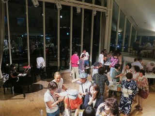 優雅な雰囲気のティールームで、猪俣美津子さん演奏のアコーディオンを聴きながら、偶然会った友人たちと乾杯!